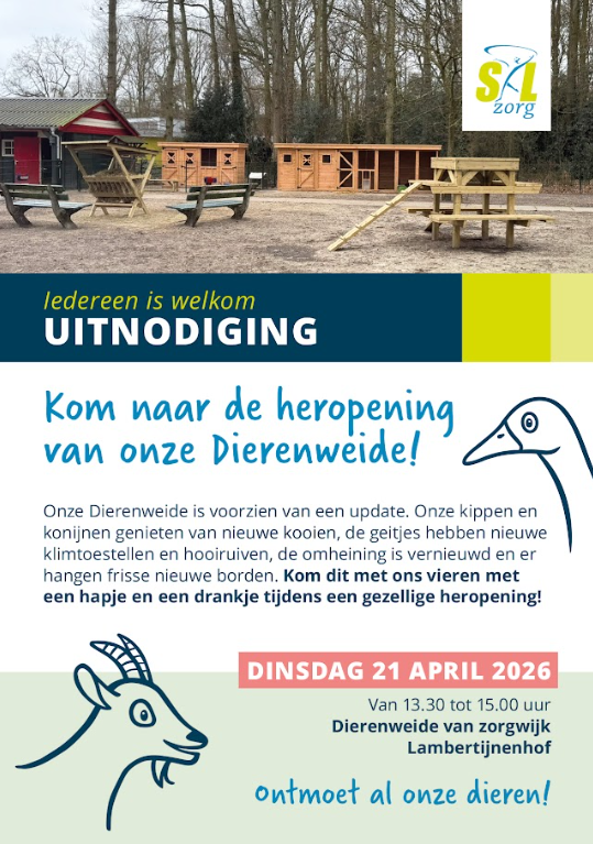 Onze Dierenweide is voorzien van een update. Onze kippen en konijnen genieten van nieuwe kooien, de geitjes hebben nieuwe klimtoestellen en hooiruiven, de omheining is vernieuwd en er hangen frisse nieuwe borden. Kom dit ment ons vieren met een hapje en een drankje tijdens een gezellige heropening!