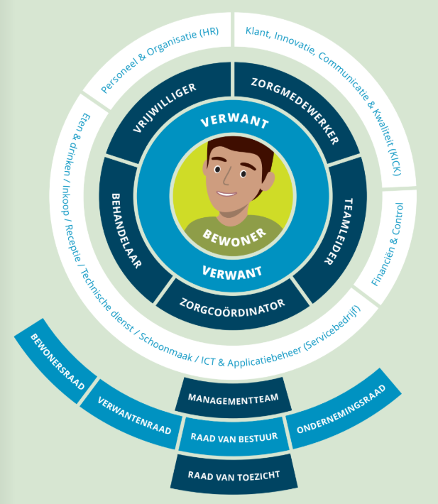 Hoe onze organisatie is opgebouwd en wordt bestuurd hebben we weergegeven in een overzichtelijk organogram, waarbij de bewoner (cliënt) duidelijk centraal staat. In ons kwaliteitsrapport en andere publicaties lees je nog veel meer, onder andere hoe wij het financieel doen. Ook hebben we een pagina ingericht om meer uitleg te geven over medezeggenschap.