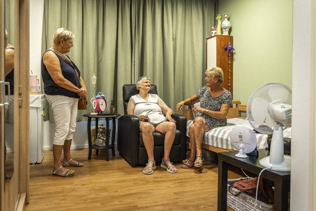 Gelukkig met positief resultaat, want Toos woont sinds januari dit jaar hier enorm naar haar zin. “Het is heel fijn en leuk hier en lekker rustig”, zegt Toos. Nel en Joke merkten na één week al verschil. “Wij kwamen bij haar langs en ze zei: ‘zullen we in de woonkamer gaan zitten?’. Dat deed ze bij haar vorige woning de laatste periode echt niet meer. We wisten niet wat we hoorden!”, vertelt Nel zichtbaar opgelucht. “Nee, daar was druk!”, zegt Toos. Inge vult aan: “Daar woonde Toos tussen best wat jonge mannen, een hele andere dynamiek dan hier. Als je ziet hoe ze hier op haar gemak is, weet je meteen dat dit de juiste keuze was voor Toos. En natuurlijk is het ook heel fijn dat ze lieve zussen heeft, die hier zo in meedenken en zo betrokken zijn.”